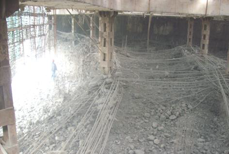 拆除作业前,拆除区域下的楼板必须铺设竹笆或木模,以防掉落的混凝土碎块破坏结构实体。