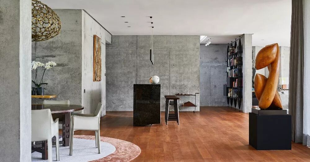 厨房的开放式导台、餐桌也是由混凝土来制作。