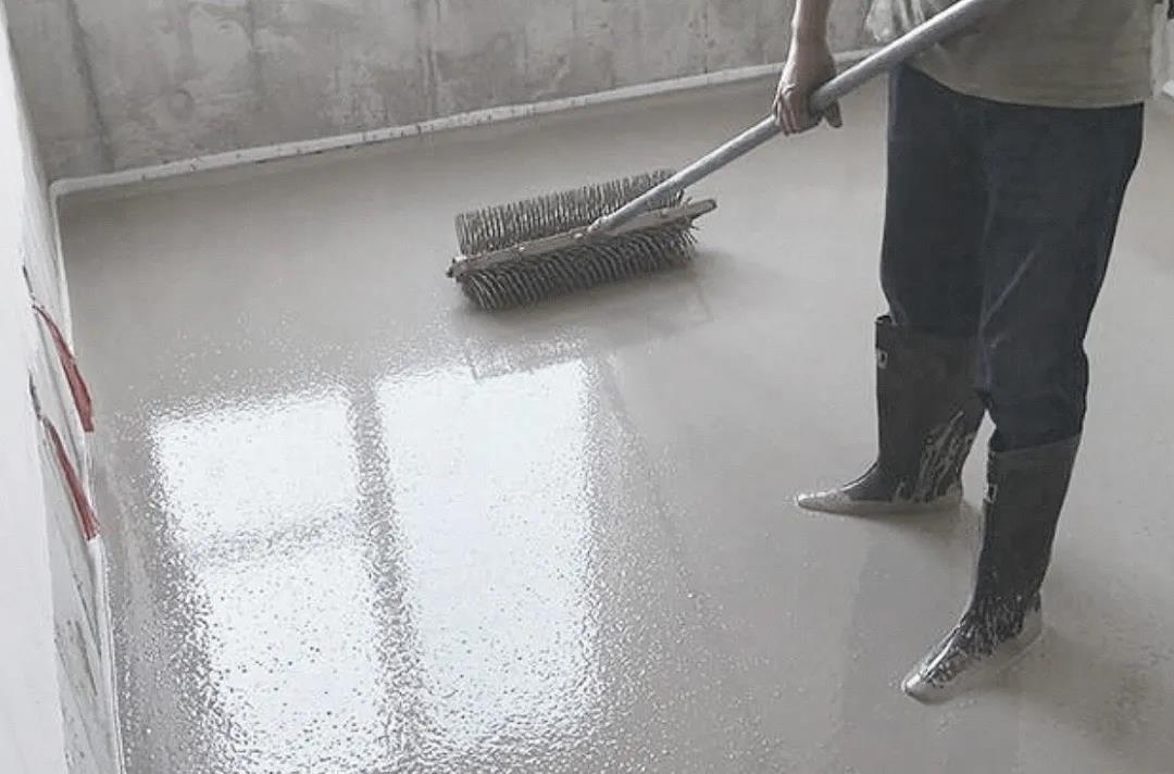 待基层干净且无明水后,使用界面剂来处理地面,通常是两遍,要等第一遍界面剂成膜之后,再打第二遍界面剂,其目的是封住地下的气泡。因界面剂打完之后需要3个小时的时间成膜,所以打完界面剂后,房间内应禁止人员走动,以免破坏界面剂形成膜,成膜后方可施工。