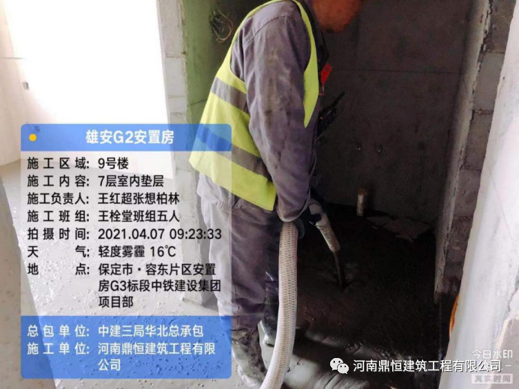 雄安容东片区G组团安置房及配套设施项目设计采用轻集料混凝土,干密度≥850KG/m³,抗压强度≥7.5Mpa。其中室内垫层约7000m³,平均厚度10cm左右;商业屋面2000m³,平均厚度20cm左右;机房回填2000m³,平均厚度80cm左右。图为我司班组人员轻集料混凝土浇筑施工中