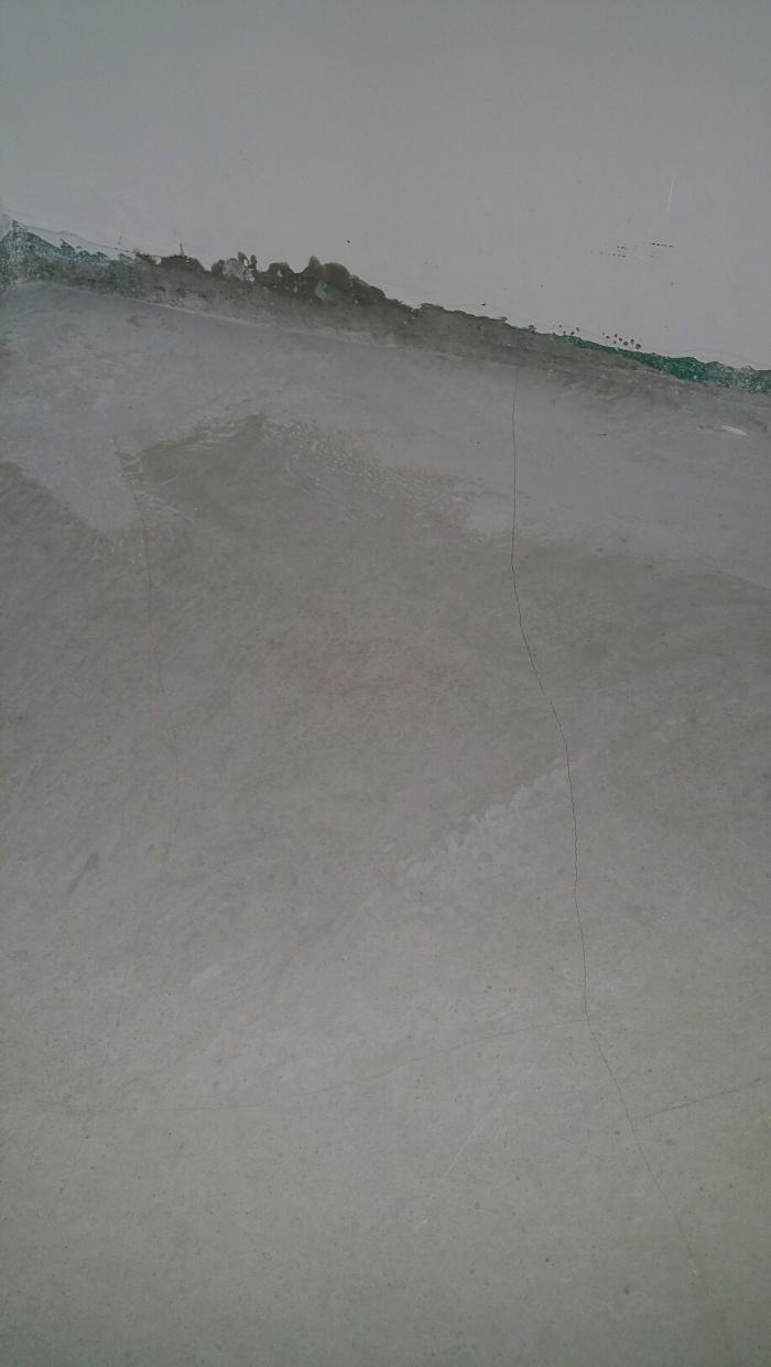 施工的时候,是直接倾倒自流平水泥浆在基层上的,如果基层上有大的裂缝的话,很可能自流平中的水分,会通过缝隙渗透到楼下。