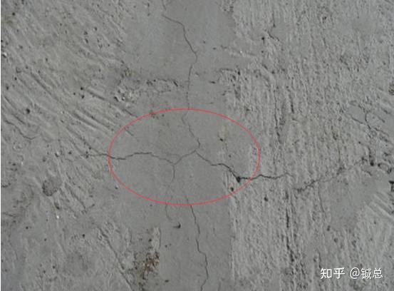 混凝土硬化后产生龟裂之原因甚多,一般是受两种以上之原因而造成龟裂。通常混凝土结构物负荷过重而产生拉应力,若混凝土抗拉强度不抵拉应力,便产生龟裂。混凝土变形之原因包括干燥收缩、温度变化、化学作用以及结构上之因素,此时应就材料、配比、养护等方面设法使收缩量减少,另方面则应从施工、设计上设法弥补先天性易龟裂之各种状况。