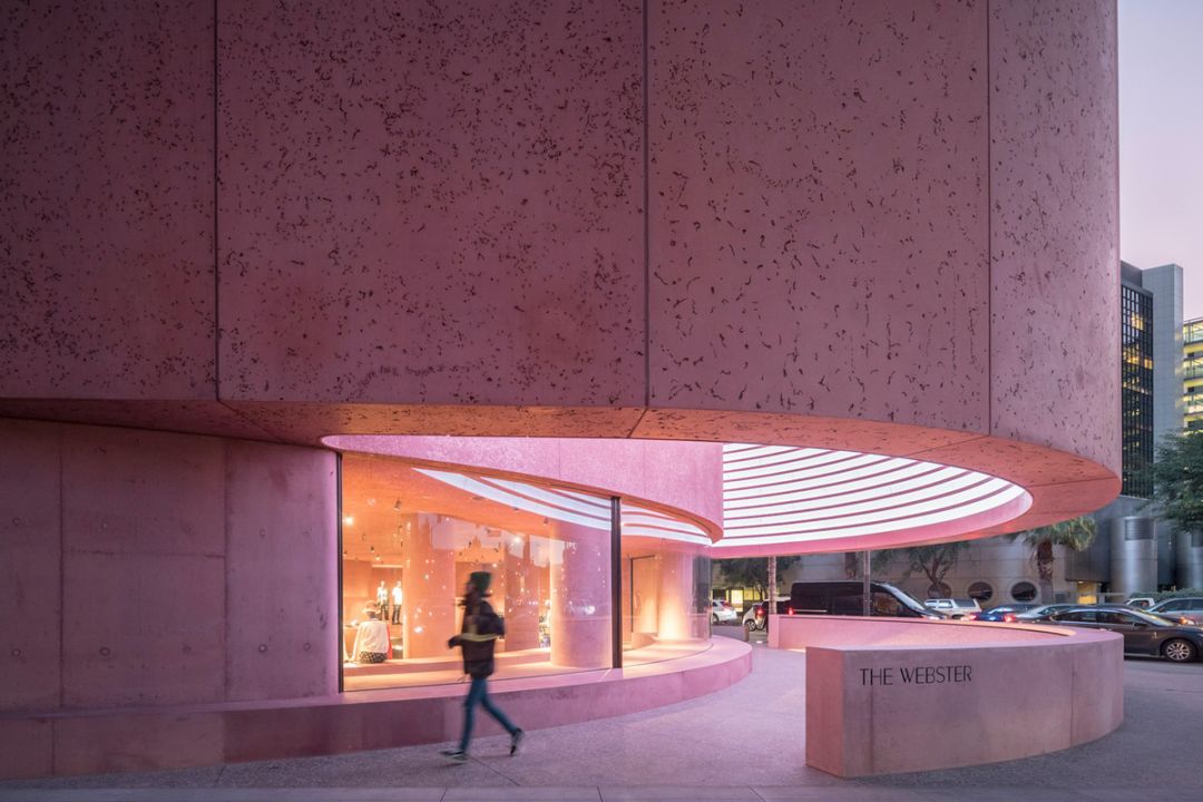 粉色混凝土同种材质的 N 种用法混凝土似乎一直被人认为是一个非常冷峻的建筑材料。但建筑师大卫·阿贾耶(David Adjaye),却将混凝土变成了既温柔又梦幻的材料 ▼他为美国洛杉矶的商场贝弗利中心(Beverley Centre)的 The Webster 商店所做的翻新设计,终于正式结束,并投入使用 ▼卫·阿贾耶David AdjayeThe Webster 是一家创立于迈阿密的奢侈品牌时装公司,在美国经营着七家实体精品店和一家在线商店,它的标志就是一只粉红色的火烈鸟 ▼在他们的官IN,也能传递出整体品牌VI的色彩设定,店铺设计有着独特的策展购物体验。这几天刚刚释出了这家洛杉矶最新门店的宣传视频。视频非常梦幻,将大卫·阿贾耶的作品诠释得淋漓尽致 ▼