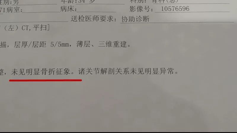 “我说好像没骨折,他(急诊伤骨科陈医生)当时还冲我,说那么大字你不会看吗?”