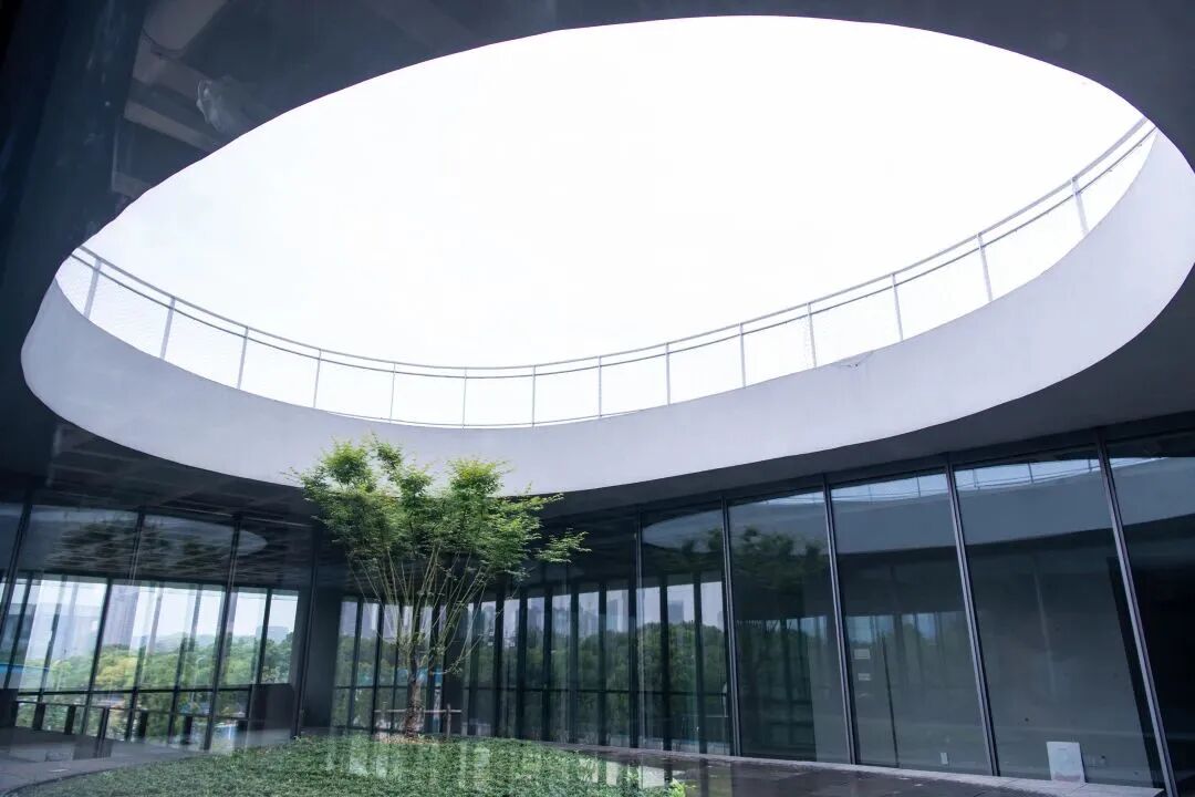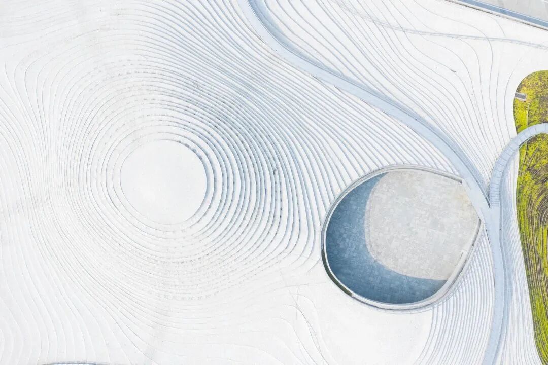 作为国内外首个地景式复杂双曲面设计的清水混凝土建筑,美术馆屋面的任何一个区域的曲率均不一致,正是这样变幻的效果搭配上内部空间的纵横交错,从而实现真正的“移步换景”。