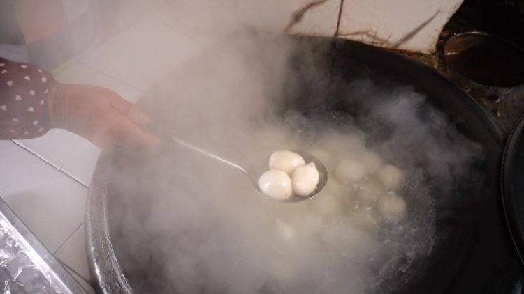 传统手工汤圆,离不开农村土灶加持。在灶头生上柴火,待水沸腾后,将个大圆润的汤圆下入锅中,轻轻搅动防止粘锅,大约十分钟后,香浓软糯的汤圆伴随升腾的热气漂浮起来,就可以出锅了。