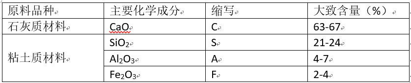 原料:生产硅酸盐水泥的主要原料是石灰质原料和粘土质原料两大类,石灰质原料如石灰石、白垩、石灰质凝灰岩等物质,它们主要提供氧化钙成分;粘土质原料如粘土、粘土质页岩、黄土等,它们主要提供二氧化硅、氧化铝以及少量的氧化铁成分。