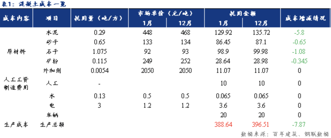 1.2.1 2023年1月混凝土原材成本分析——水泥