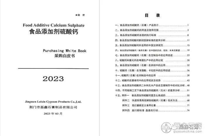 2023年3月,根据最新颁布的法律法规及食品行业的发展,磊鑫石膏正式推出修订后的《食品添加剂硫酸钙 采购白皮书》(2023)第五版。与(2018)第四版(其中2015为第三版,2012为第二版,2011为第一版)相比,主要变化如下: