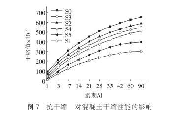 抗干缩剂对混凝土干缩性能的影响见图7。