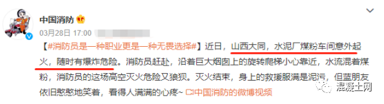 2023年3月28日,中国消防消息,山西大同,某水泥厂煤粉车间意外起火,随时有爆炸危险。