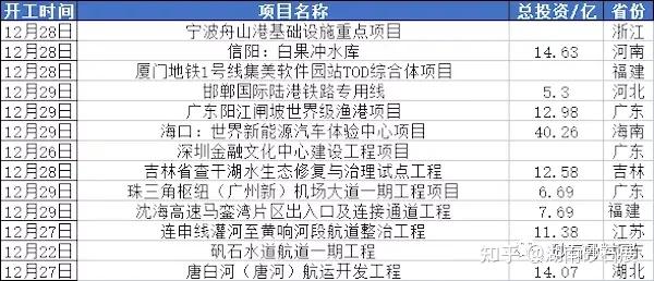 12月上半月,全国开工的重大项目约22个,总投资约1902亿。12月下半月,全国开工的重大项目约71个,涉及项目包括公路、地铁、城市开发、机场、港口、航道、水利等等,总投资约6400亿。具体项目详情如下: