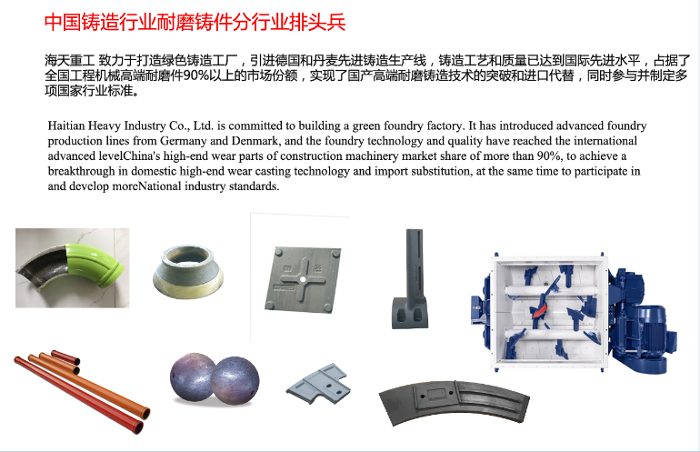 马鞍山市海天重工科技发展有限公司成立于2004年6月,公司自成立以来,一直秉承着在中华文化下做国内一流、品质优先宗旨,致力于工程机械耐磨件的研发、生产和销售,是一家专业生产高端高铬耐磨铸件的国家高新技术企业和国家工信部专精特新“小巨人”企业,是三一重工、中联重科、徐工集团、山推集团、日本(日工NIKKO)、德国利勃海尔(LIEBHERR)等国内、外龙头工程机械厂商的核心供应商,产品覆盖国内20多个省市、自治区,并远销日本、韩国、台湾及澳洲、欧盟等国家和地区。